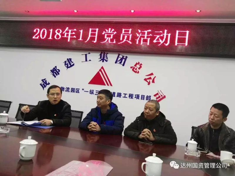 1月10日,2018年第一個(gè)“黨員活動(dòng)日”,達(dá)州市國有資產(chǎn)經(jīng)營管理公司黨支部結(jié)合“黨建工作進(jìn)項(xiàng)目,聯(lián)建聯(lián)動(dòng)促發(fā)展”、“走基層,解難題,辦實(shí)事,惠民生“活動(dòng)開展,聯(lián)合成都建工集團(tuán)秦巴物流園區(qū)項(xiàng)目黨支部聯(lián)動(dòng)開展主題黨日活動(dòng)。活動(dòng)以專題黨課輔導(dǎo)、學(xué)習(xí)研討、現(xiàn)場觀摩秦巴物流園區(qū)青杠梁段揚(yáng)塵治理規(guī)范化管理示范點(diǎn)(全市市政道路揚(yáng)塵治理規(guī)范化管理示范點(diǎn))等方式進(jìn)行。