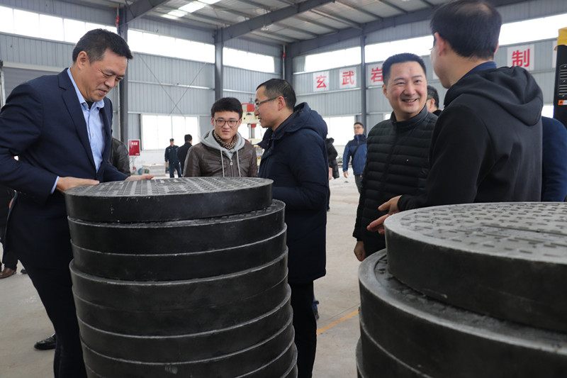 在玄武巖產業(yè)園區(qū)何政詳細了解了當前產業(yè)發(fā)展和后制品研發(fā)生產情況。鄧華詳細匯報了目前玄武巖纖維原絲及后制品的生產銷售情況,得知新型玄纖制品新廁所已面市,何政一行深入進入生產車間并現場查看和體驗產品性能。