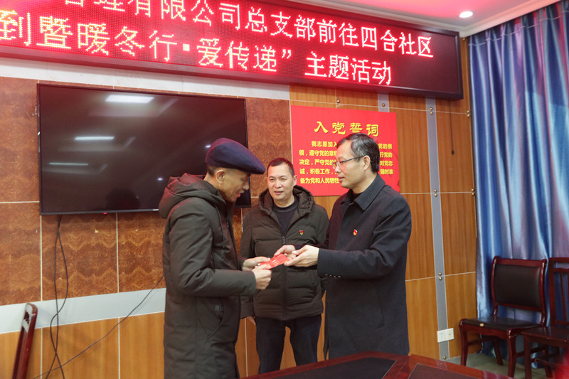 隨后,董事長(zhǎng)朱和志、副總經(jīng)理廖中齊分別看望慰問了四合社區(qū)困難黨員和困難群眾,詳細(xì)詢問他們的身體狀況和生活情況,向他們送去了節(jié)日的問候。